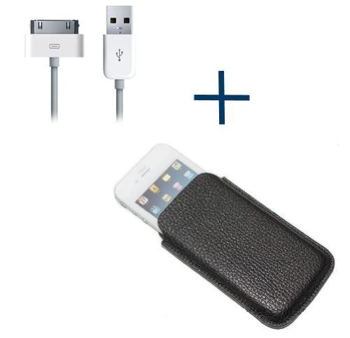 BEST DISCOUNT iGet (TM) Slim Leather Case + Sync Cable for iPod Touch & iPhone 4 4S - Ultra Slim Design - Black (2pc Combo)